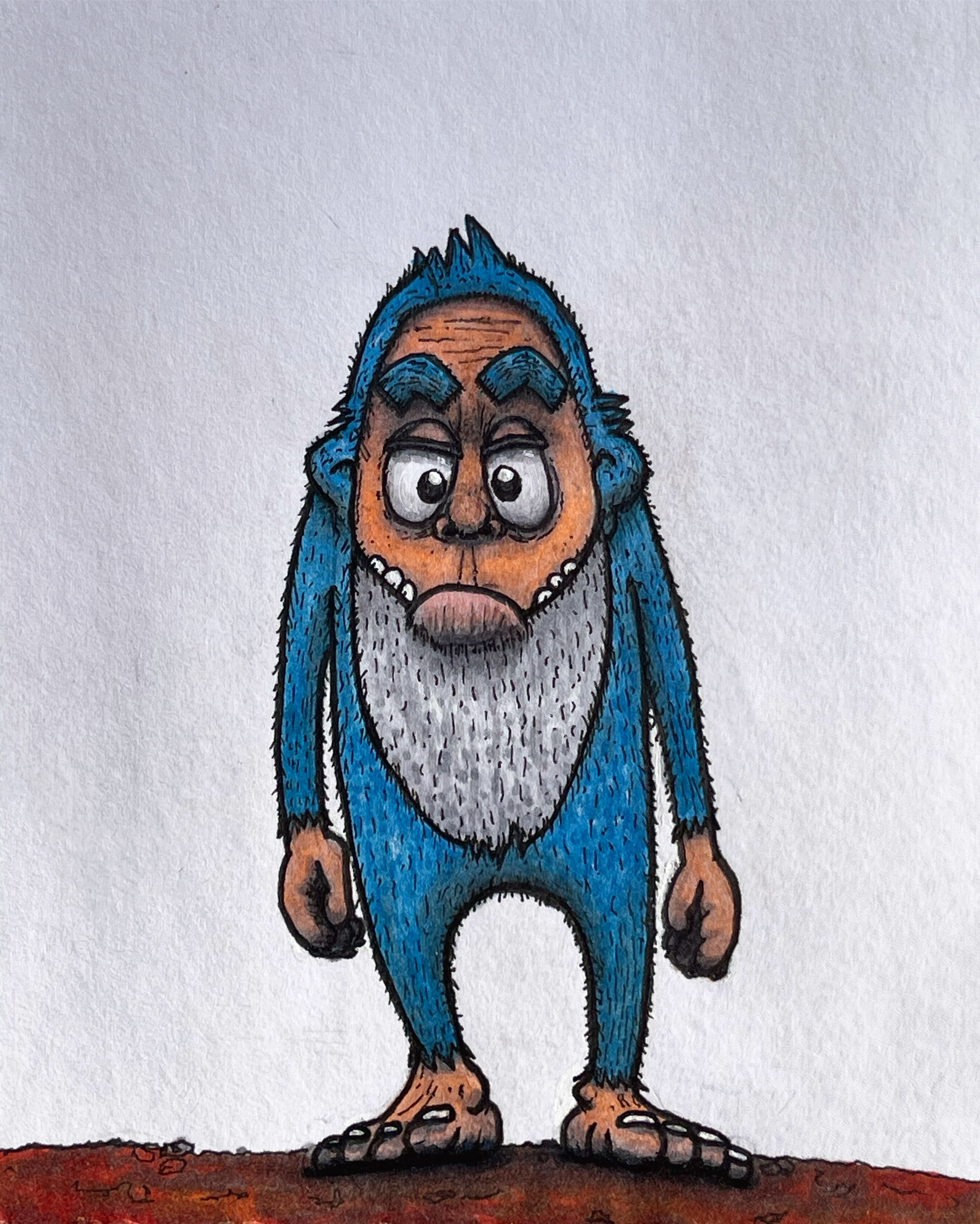 My kids named him: Mr. FuzzbearCopic markers, Pigma Micron Pens & white gel pen on Xpress Blender Card